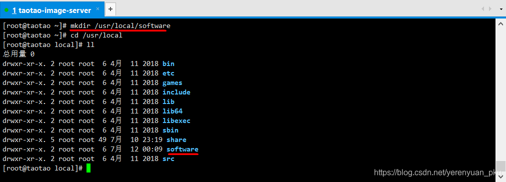 为了便于办理,我们正在Linux办事器上新建一个/usr/local/software目次,特地用于存放安拆包,如下图所示。