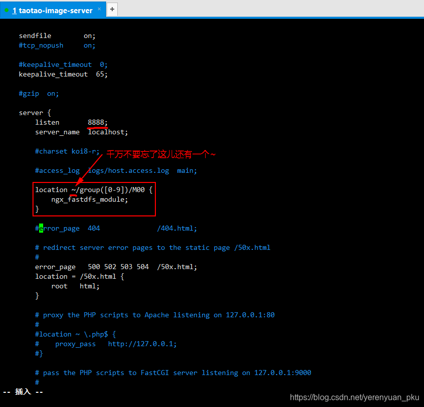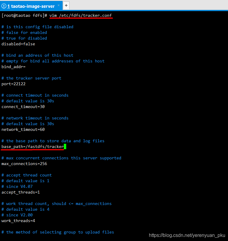 第二步,利用进入编纂模式,然后点窜base_path的值为/fastdfs/tracker,如下图所示。