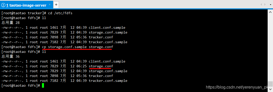 第一步,切到/etc/fdfs目次下,然后复制一份f.sample文件并沉定名为storage.conf,如下图所示。