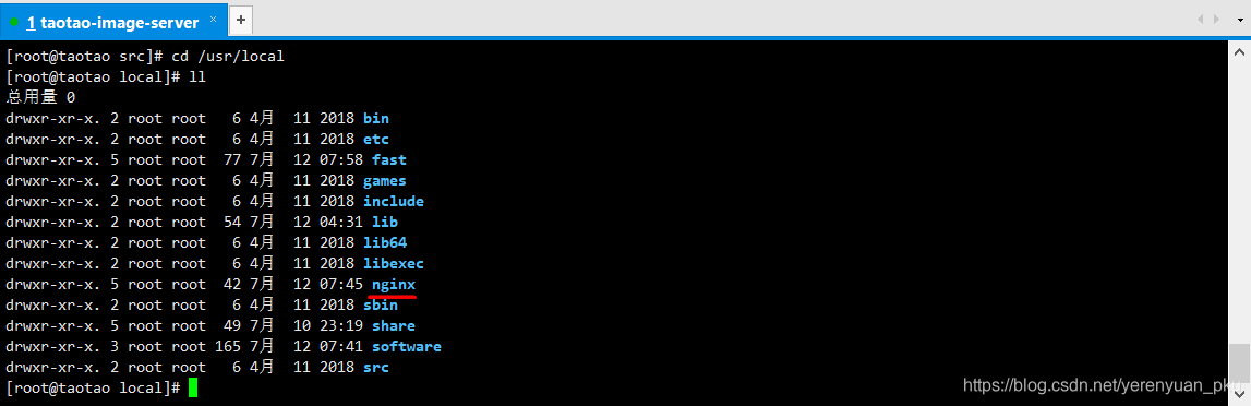 第四步,把FastDFS取Nginx进行连系,果为我们适才安拆过Nginx了,果而正在/usr/local目次下曾经生成了一个nginx目次,如下图所示。