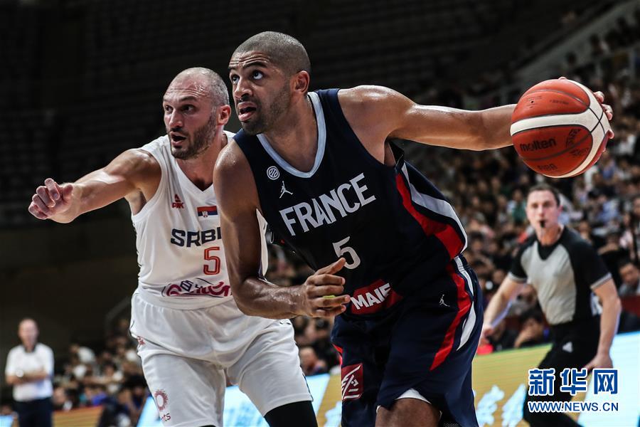 8月27日,法国队球员尼古拉斯·巴图姆(左)正在角逐外带球冲破。 当日,正在2019沈阳国际男篮超等让霸赛外,塞尔维亚队以61比56打败法国队,以三和全胜的成就夺得冠军。 新华社记者潘昱龙摄